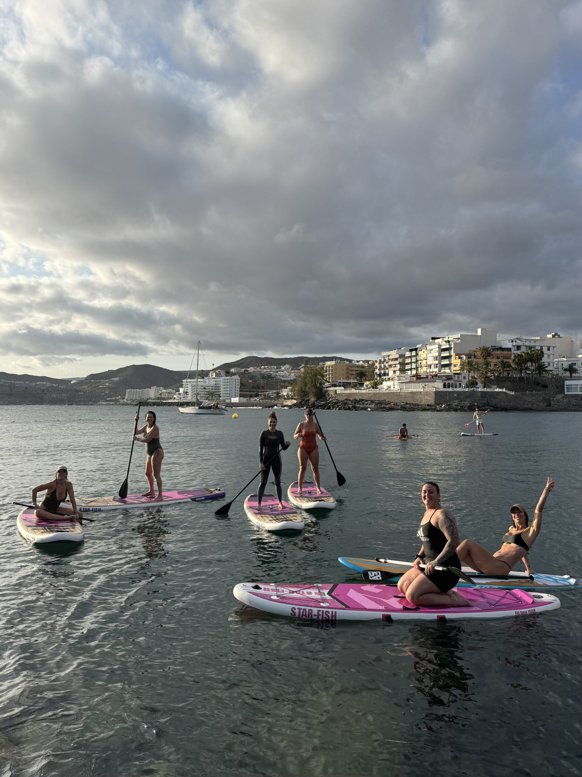 El paddle surf es perfecto para fortalecer cuerpo y mente, y en nuestras aguas canarias lo harás rodeado de paisajes increíbles. Además, organizamos salidas en grupo, eventos especiales al atardecer y rutas guiadas para descubrir rincones secretos de la costa. Si buscas una actividad divertida, refrescante y diferente, esta es la opción ideal. Ven a probar una clase y entenderás por qué cada vez más personas se enganchan a este deporte.