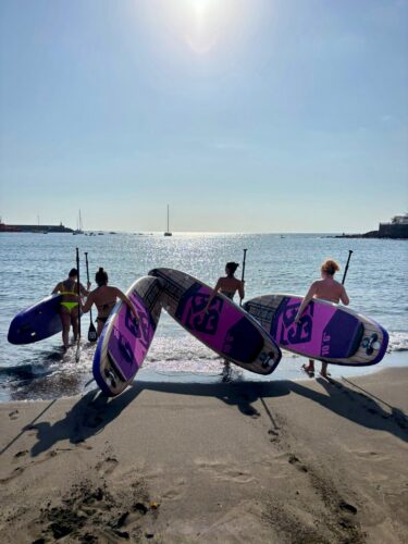 En nuestra escuela de paddle surf, te ofrecemos una experiencia completa que combina deporte, naturaleza y buen rollo. Aprenderás desde cómo subirte a la tabla, hasta remar con técnica y seguridad en distintos tipos de mar. No importa tu edad ni condición física, nuestras clases están diseñadas para adaptarse a ti y hacerte disfrutar desde el primer momento.