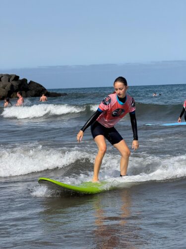 Sabemos que no todas las personas aprenden igual, por eso adaptamos las clases al ritmo y necesidades de cada alumno. Puedes optar por clases privadas, en pareja o grupales. También contamos con clases específicas para niños, adaptadas a su edad y nivel, siempre en un entorno seguro, divertido y profesional. Todo el material está incluido: tabla, licra… Solo necesitas traer ganas de aprender y pasarlo bien. Nos encontrarás en una de las mejores zonas de la isla, donde las condiciones del mar son ideales casi todo el año. Si buscas una experiencia completa de surf en Canarias, con calidad, seguridad y buen ambiente, nuestras clases son tu mejor opción. Surfearás desde el primer día y volverás por más.