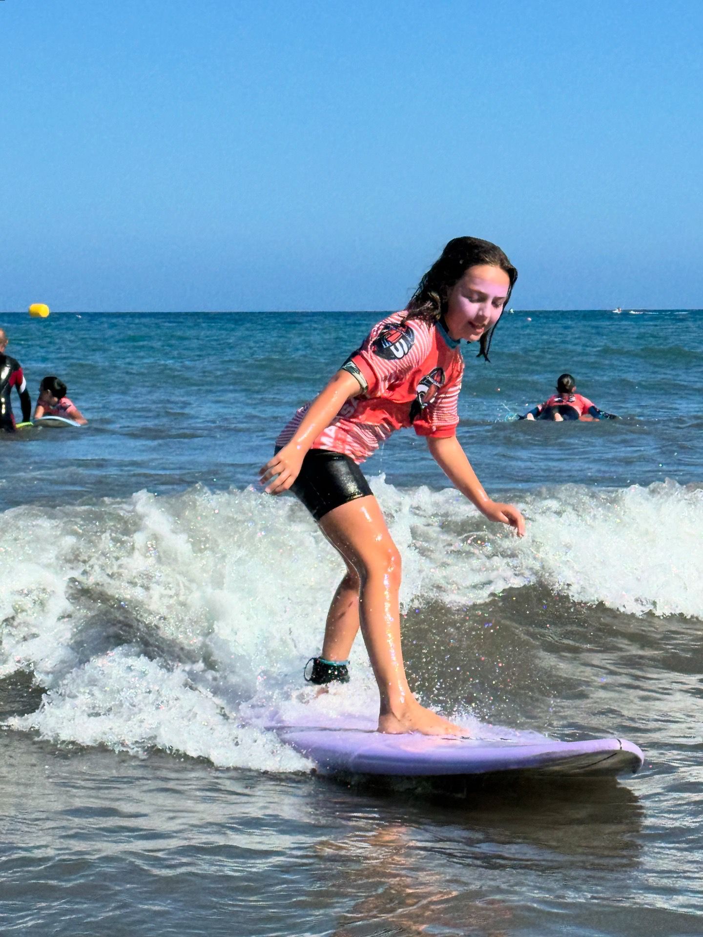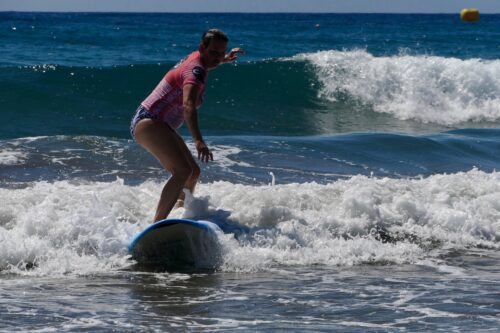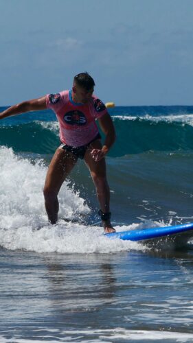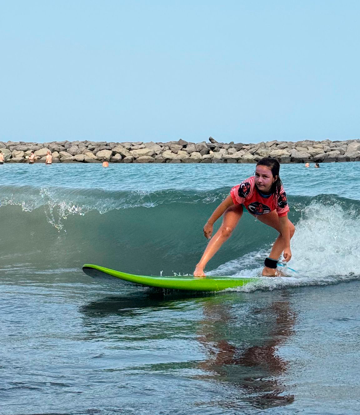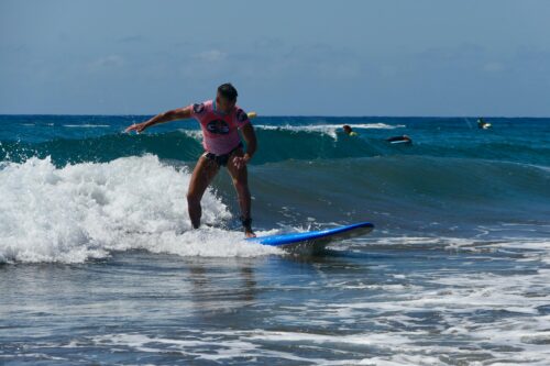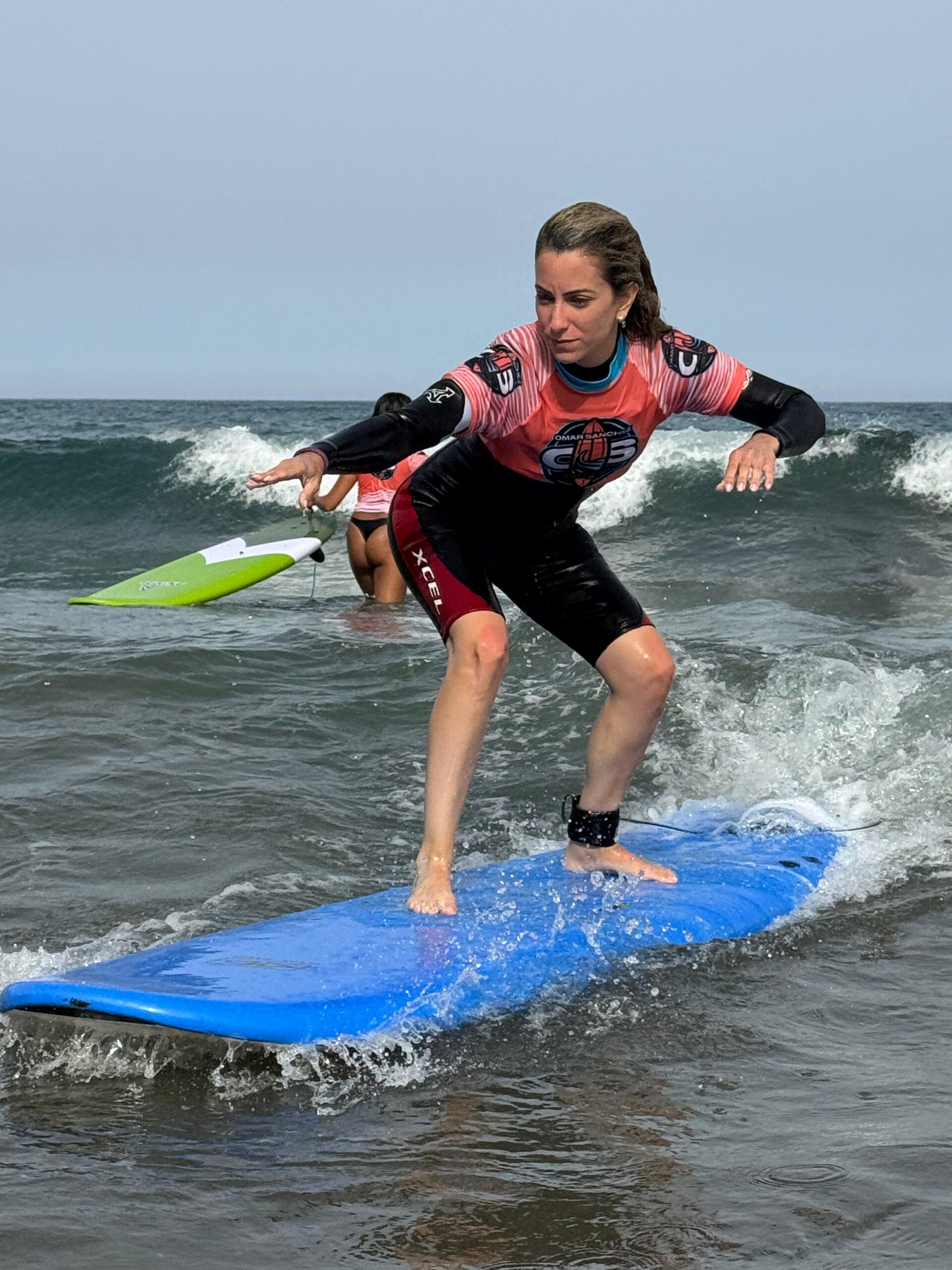 En nuestras clases de surf en Gran Canaria encontrarás mucho más que una simple iniciación. Diseñadas para todos los niveles ( niños, jóvenes y adultos ), desde principiantes hasta surfistas intermedios, nuestras sesiones combinan teoría, práctica y conexión real con el mar. Aprenderás a entender las corrientes, a remar de forma eficiente y a ponerte de pie sobre la tabla con seguridad. Pero también te enseñamos a respetar las olas, leer el entorno y disfrutar cada segundo en el agua. Nuestro equipo está formado por instructores titulados con años de experiencia que te acompañarán paso a paso, con trato cercano y atención personalizada.